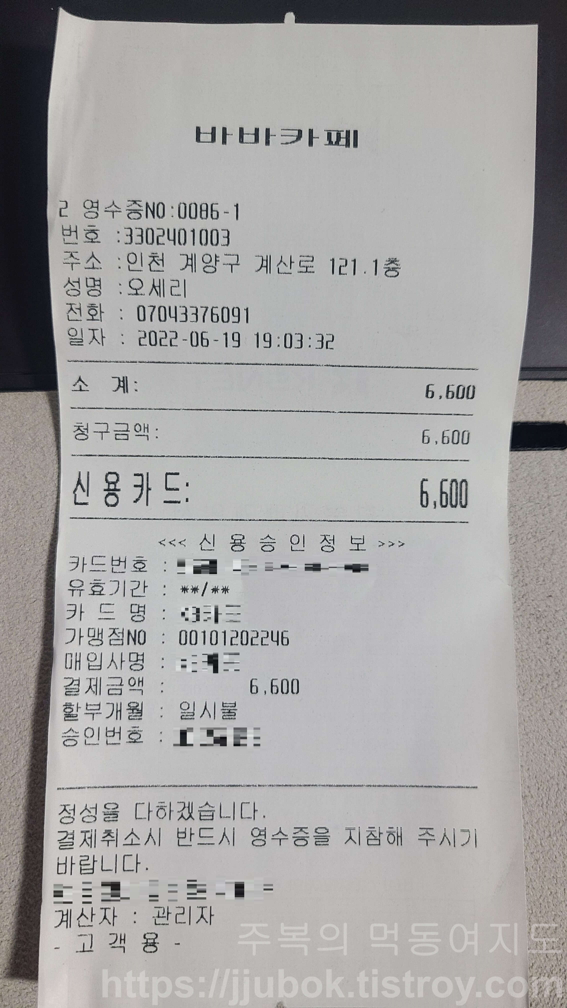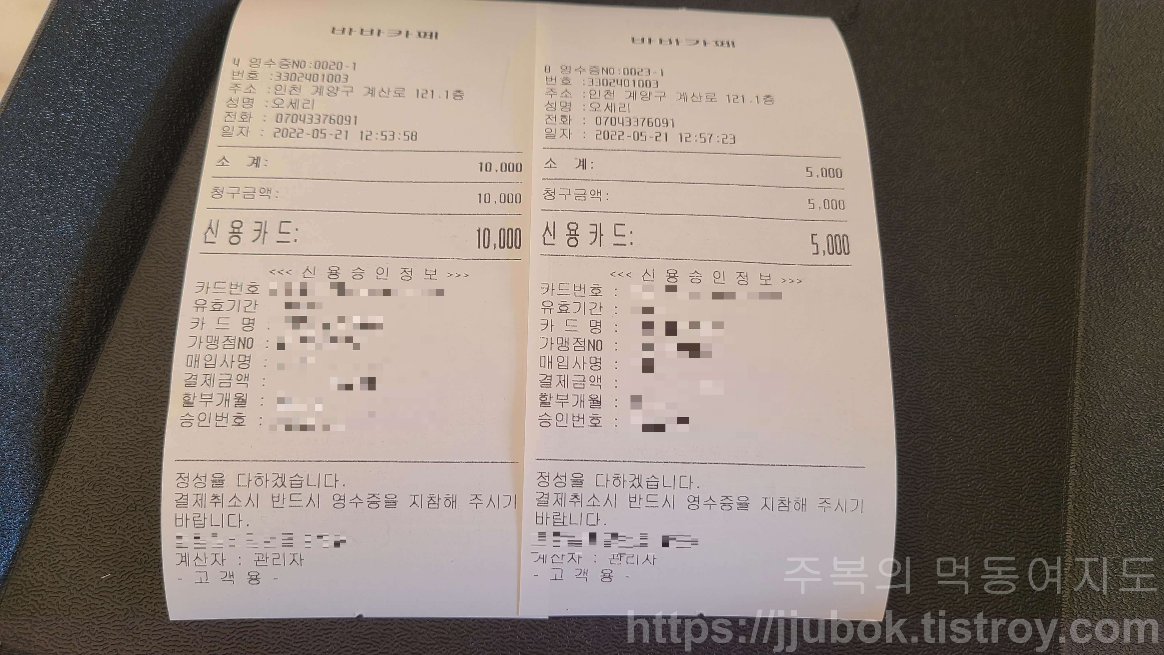 인천 계산동에 위치한 바바카페 편의