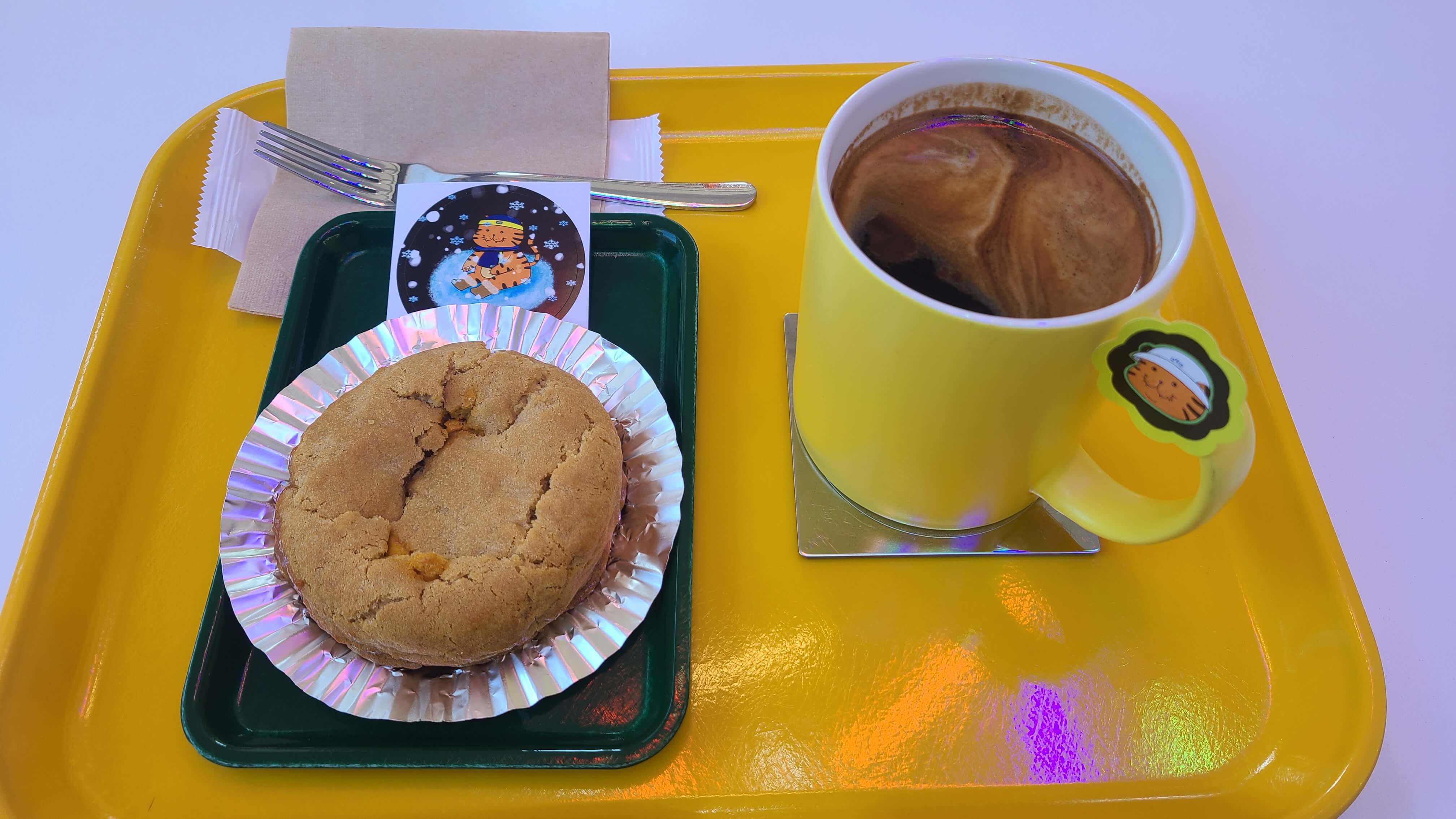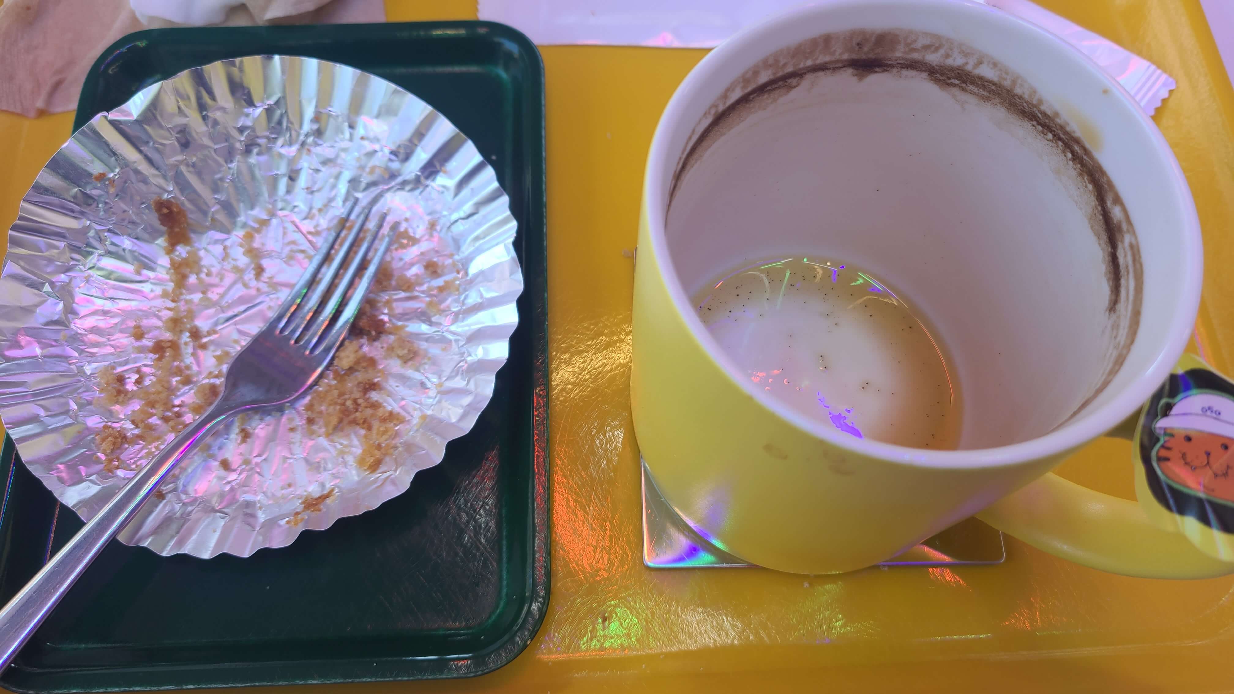 그리고 컵의 손잡이와 쟁반 위에
