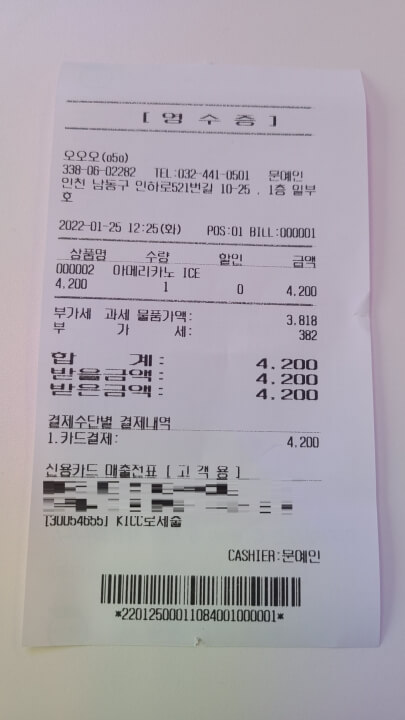 사장님 : 네 ~ 4,200원 결제 도와드리겠습니다 ~