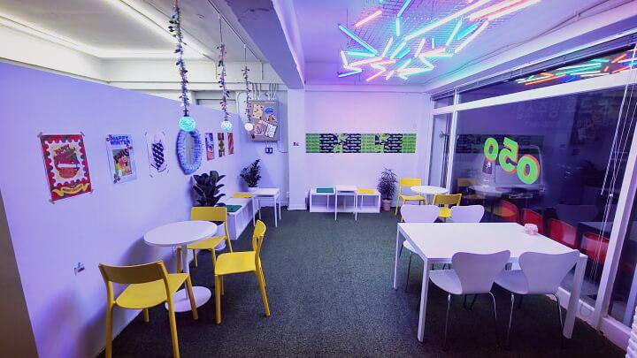 천정에 컬러풀한 네온 컬러 +