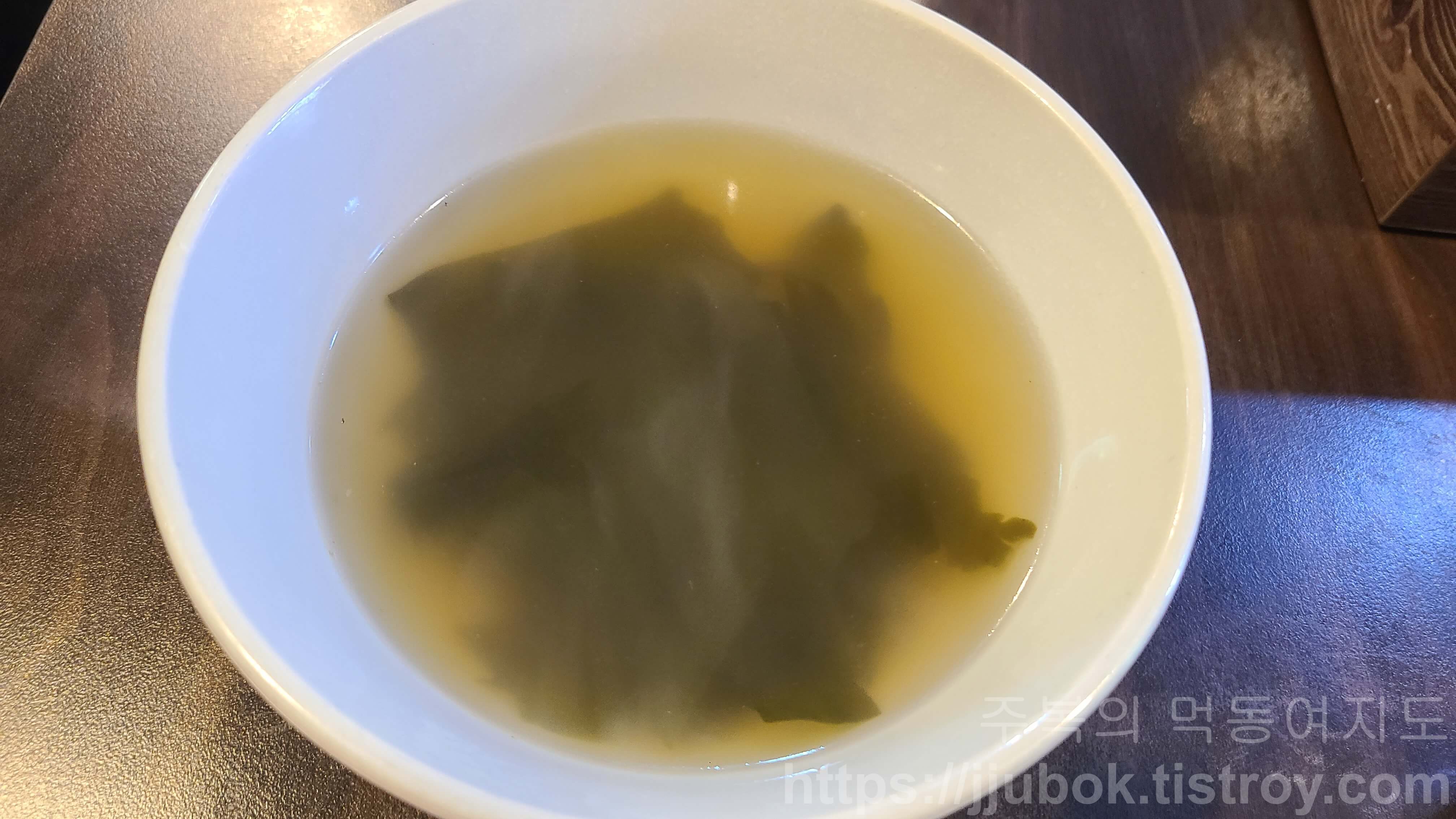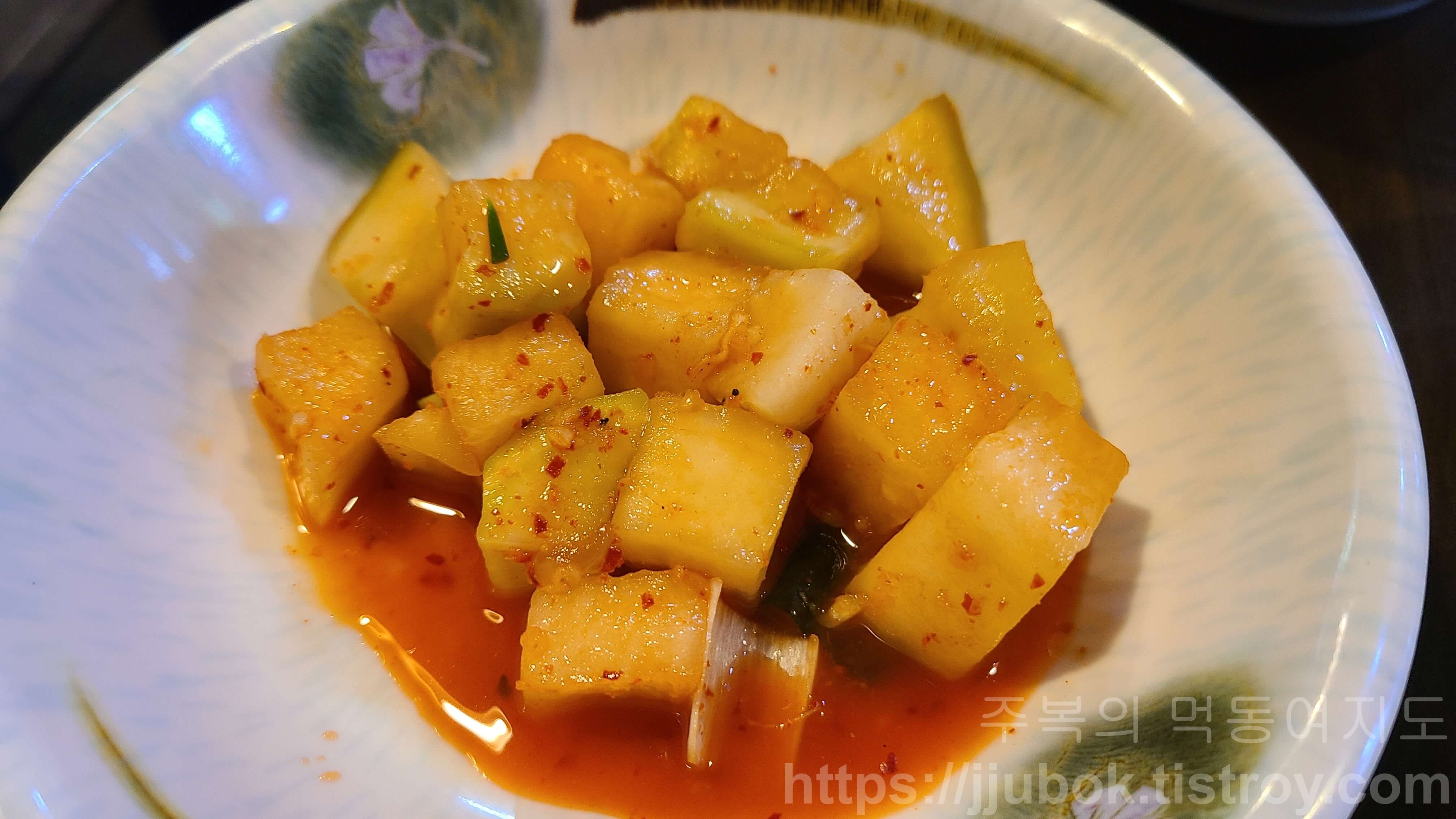 보통은 이렇게 깍두기와 국물이 나오는 편입니다.