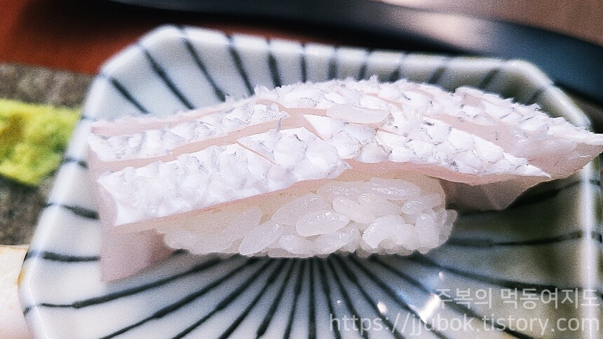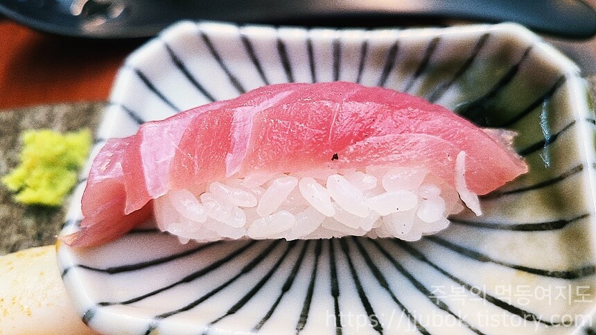 톡 쏘는 느낌보다 고소한 느낌이 풍겨오는 와사비, 딱 알맞은 식감의 밥알까지 모든 구성요소가 모여서 완성도가 뛰어난 초밥을 제대로 맛본 느낌입니다.
