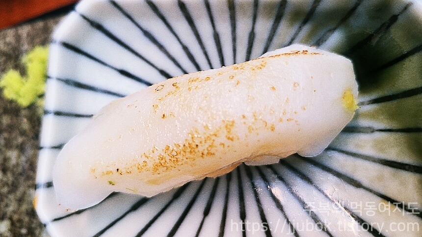 이까(오징어) 초밥은 입에 쫀득하게 떡처럼 달라붙는 식감이 재미있었으며