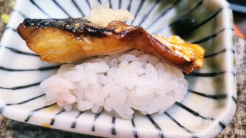 직화초밥, 북해도관자초밥 등등까지 전부 개성이 강한 식감과 맛의 밸런스는 모난 것 하나 없이 입 안에 쏙쏙 빨려 들어가는 느낌을 받았습니다.