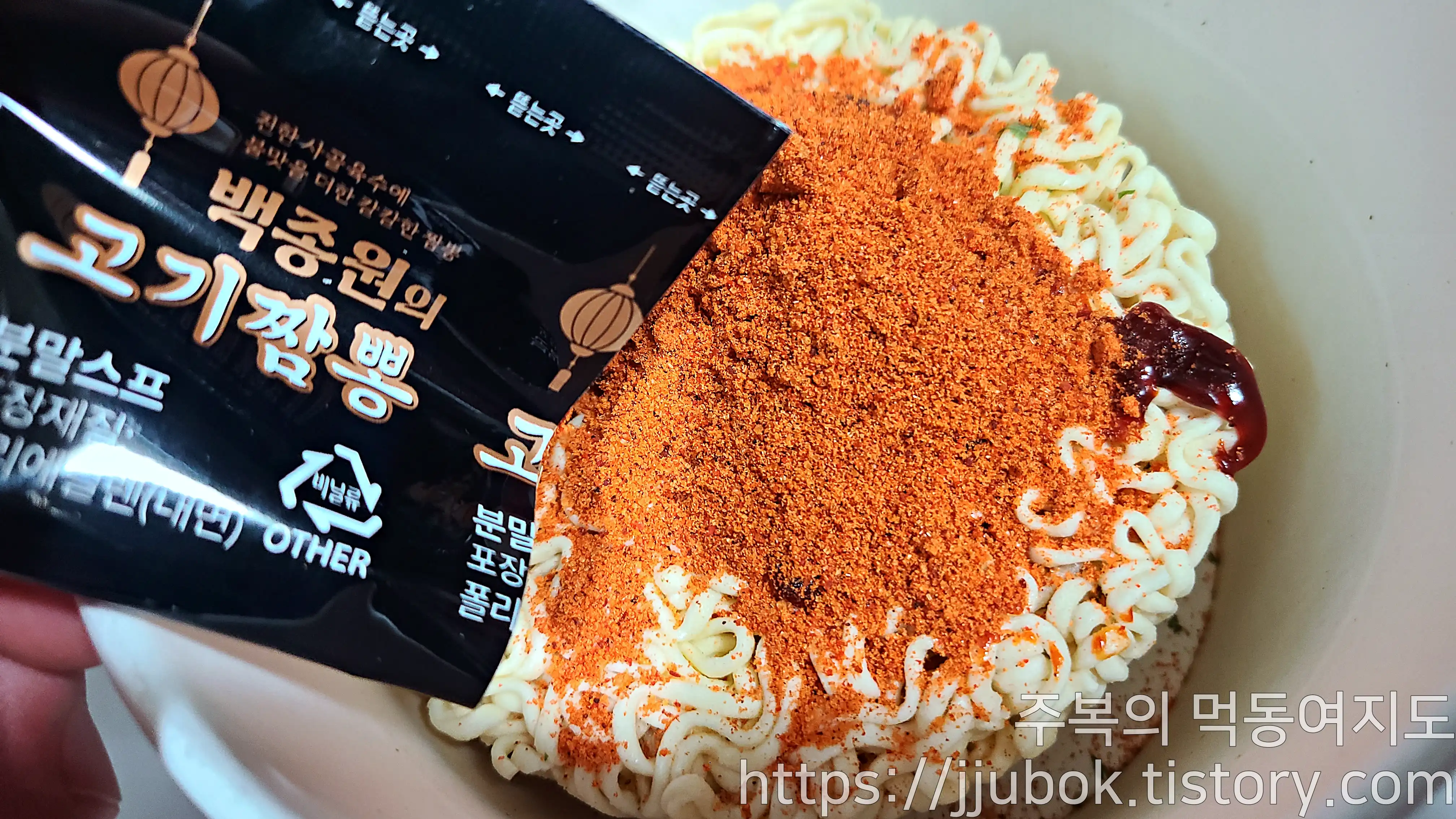 사실상 조리라고 할 것도 없는 과정을 거쳐 백종원의 고기짬뽕이 완성되었습니다 ! 역시 컵라면은 간단하면서도 쉽고 든든하게 먹을 수 있다는 장점이 매력적이어서 자주 찾아 먹게 된다고 할까요?